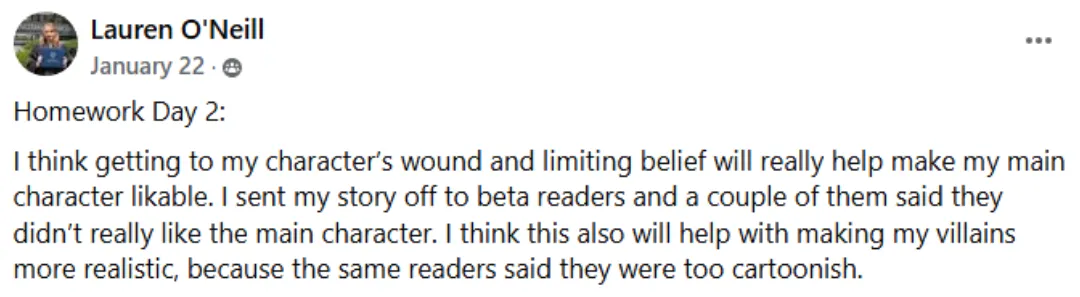 Deducing their logical limiting belief — will inform their actions, reactions and choices throughout the story, making them feel very realistic and 3D.